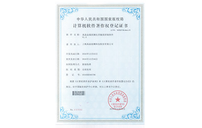 2016年软件著作权登记证书-高晶金检吹气系统自动化控制软件V2.0