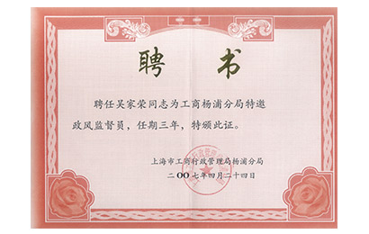 2007杨浦工商局政风监督员聘书